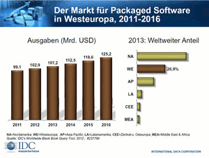 Z připojeného grafu vidíme, že podíl západní Evropy na celosvětových výdajích na tento druh sofware činí okolo 27%.